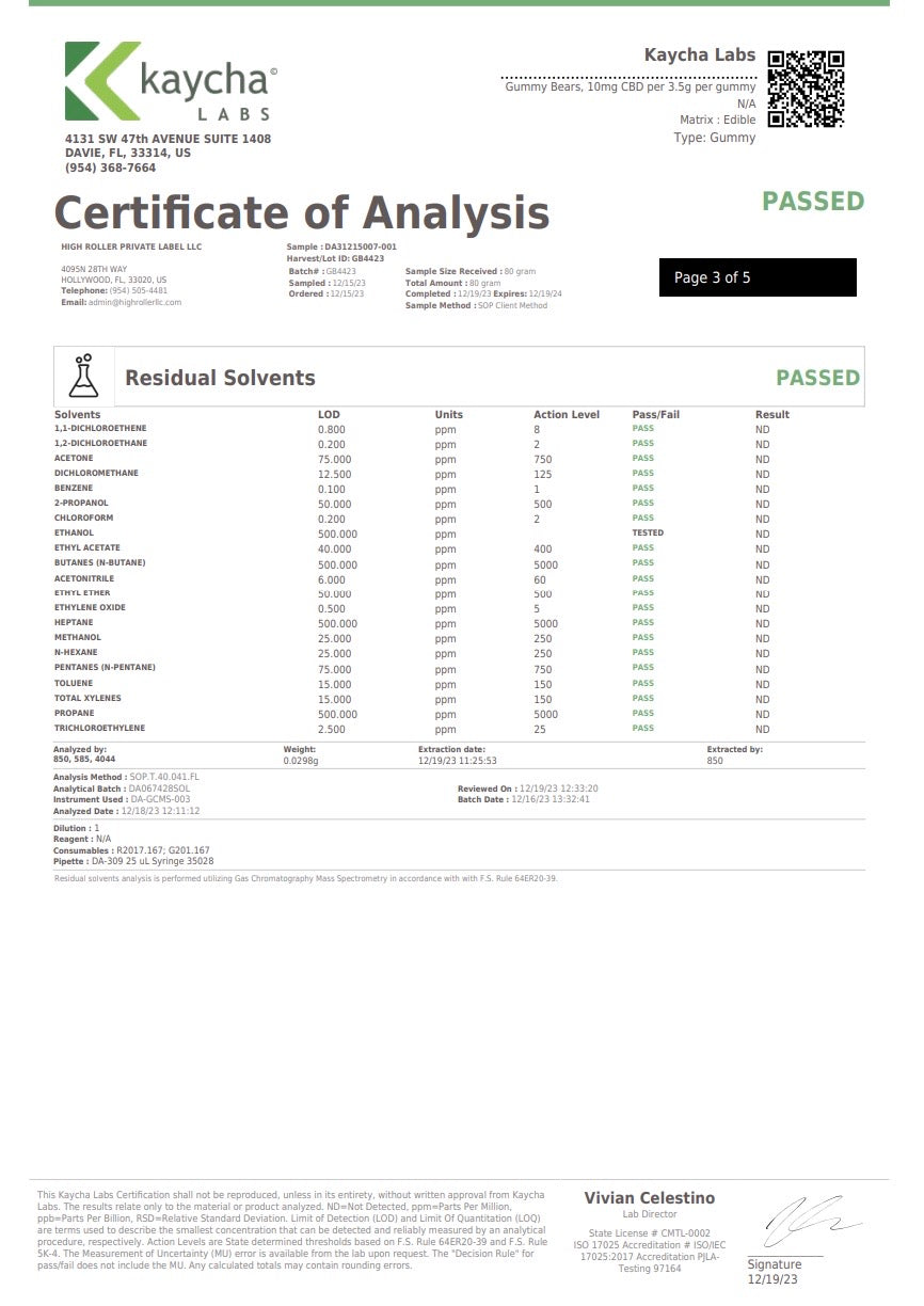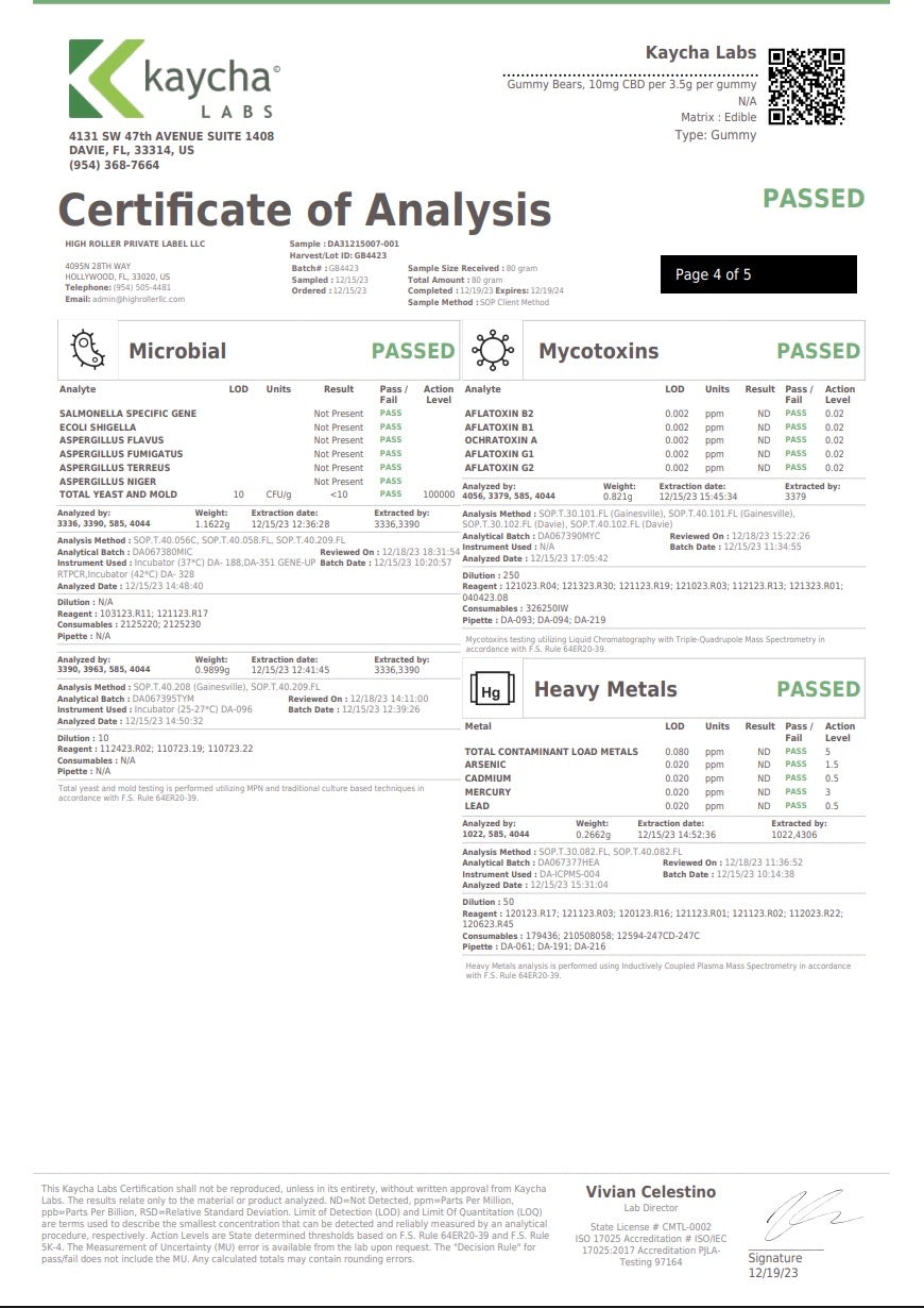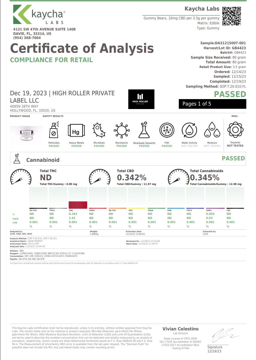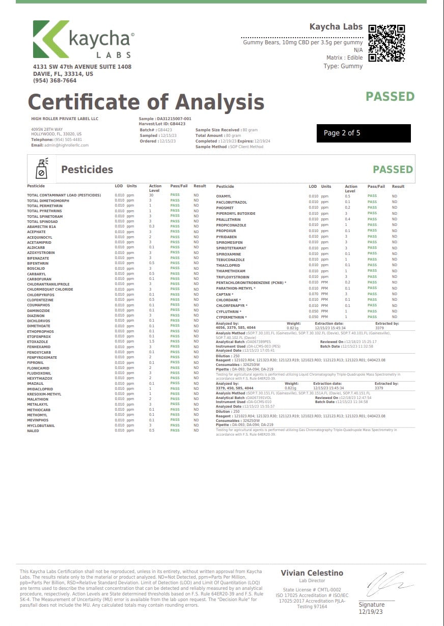 Servings: Approx. 25, Serving Size: 4 pcs. (14g), Approx. 10mg CBD per gummy. Amount per Serving: Calories: 44, Total Fat: 0g (0% DV), Saturated Fat: 0g (0% DV), Trans Fat: 0g (0% DV),